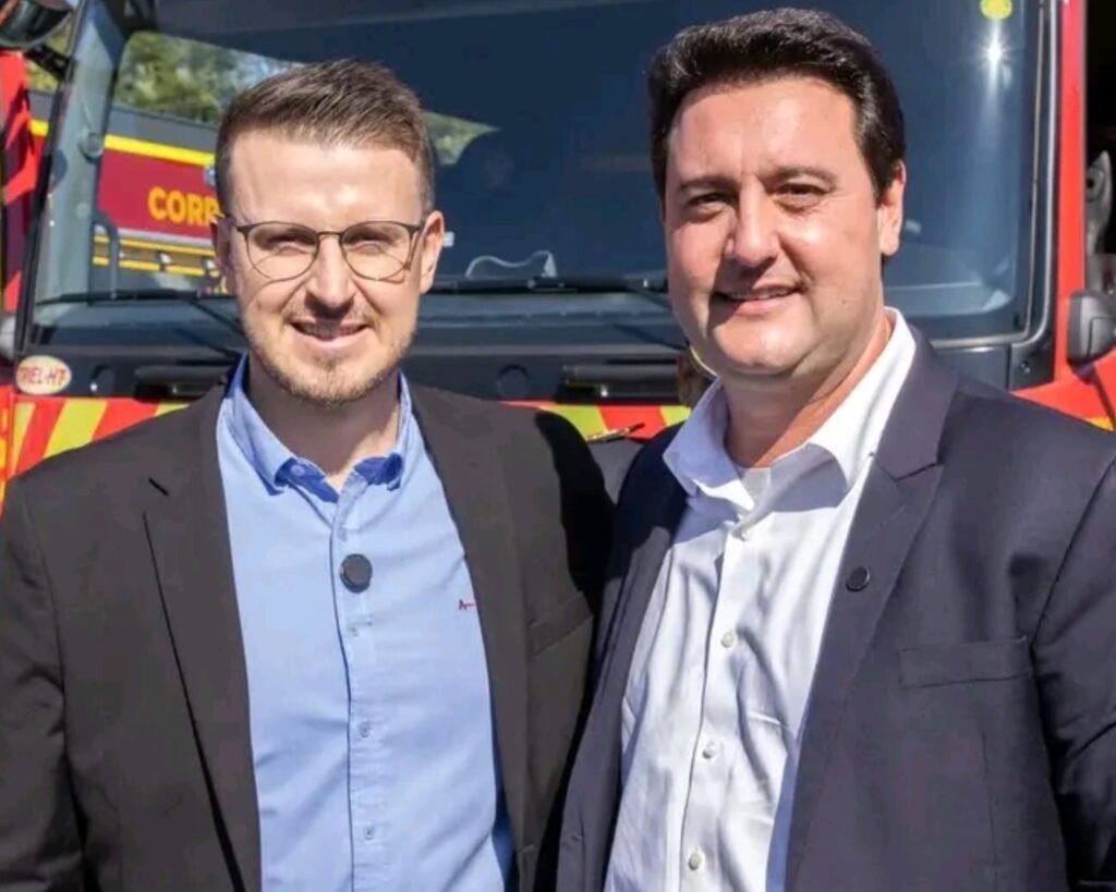Imagem: Ric / Vice-prefeito Serjão (esquerda); Prefeito Marcondes (direita) Fazenda Rio Grande, município na Região Metropolitana de Curitiba, no Paraná,