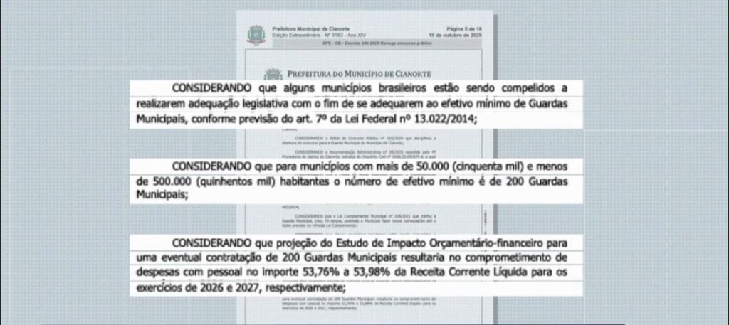 Em uma decisão controversa que tem gerado revolta entre centenas de candidatos aprovados em concurso, o prefeito de Cianorte, Marco Franzato (PSD), revogou o concurso público para a Guarda Municipal, acabando com sonhos profissionais e questionando a real transparência da administração municipal. A matéria exibida pela RPC, afiliada da Globo, no programa Meio Dia Paraná no dia 15 de outubro, destacou a mobilização dos candidatos, que formaram uma comissão para pressionar a prefeitura pela revogação do decreto. Nesta reportagem, foram entrevistados alguns candidatos que foram aprovados, que investiram tempo, dinheiro e esforço em um processo que foi abruptamente interrompido por uma escolha absurda do prefeito.