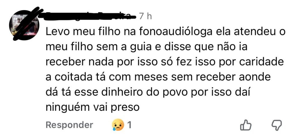 Relatos citados por pais em comentários nas redes sociais pintam um quadro alarmante. Famílias descrevem o pânico com a interrupção abrupta de sessões de fonoaudiologia, terapia ocupacional e psicopedagogia, essenciais para o progresso das crianças. ´´Levo meu filho na fonoaudióloga, ela atendeu o meu filho sem a guia e disse que não irá receber nada por isso, só fez isso por caridade…´´, desabafou uma mãe.