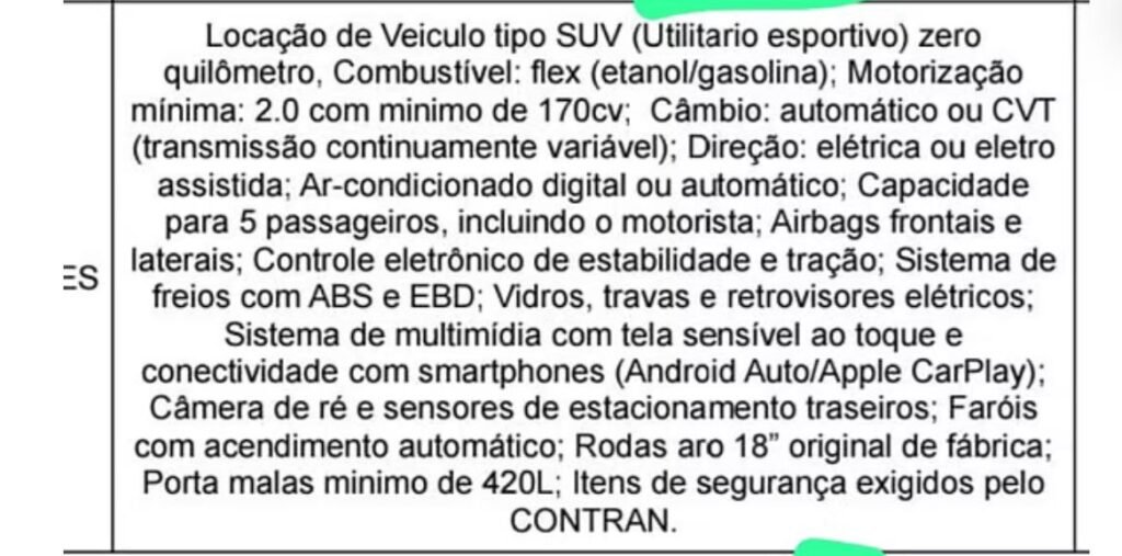 Enquanto famílias lutam pela continuidade dos tratamentos, um contraste gritante surge nos gastos públicos. Paralelamente à crise na saúde infantil, a Prefeitura de Cianorte aprovou recentemente uma licitação para o aluguel de veículos de luxo. Detalhes da licitação, acessíveis no site do portal, apontam para contratos de locação de carros premium – como SUVs e sedãs de alto padrão – avaliados em valores que poderiam suprir meses de repasses atrasados para clínicas como a Afective. Veja algumas exigências para os carros da licitação, que chegam a ser absurdas:
