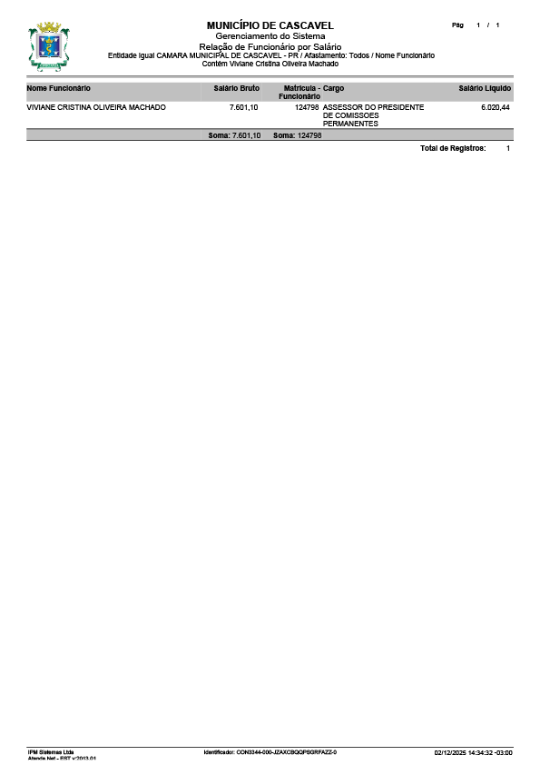 Agora, em 2025, o caso de Viviane volta à tona após ser nomeada para um cargo comissionado na Câmara de Cascavel: Assessora do Presidente da Comissão Permanente de Proteção e Direito dos Animais. A nomeação foi sancionada pelo presidente da Câmara, Tiago Almeida (Republicanos), e o cargo está vinculado ao vereador Serginho Ribeiro (PSD), presidente da Comissão. Segundo o Portal da Transparência, o salário líquido do cargo é de R$ 6.020,44.